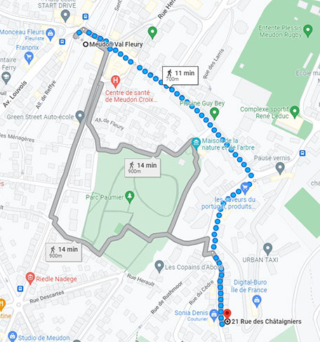 Depuis Paris, prendre le RER C (direction Versailles Rive Gauche, St Quentin en Yvelines). Descendre à Meudon Val-Fleury. Monter la rue Banès faisant l'angle avec la pharmacie), ensuite parcours fléché, rue Charles Infroit. Une fois en haut, tourner à droite,